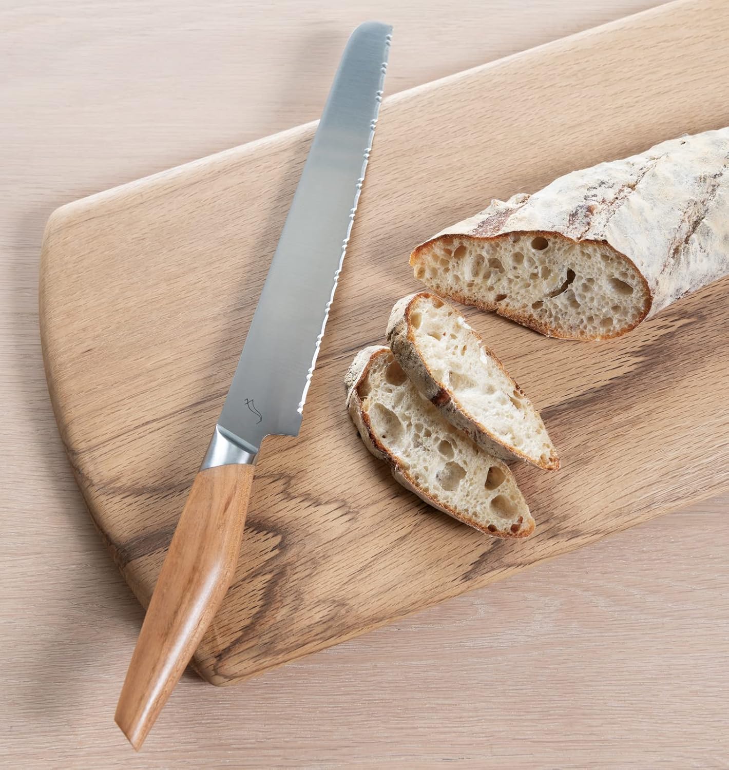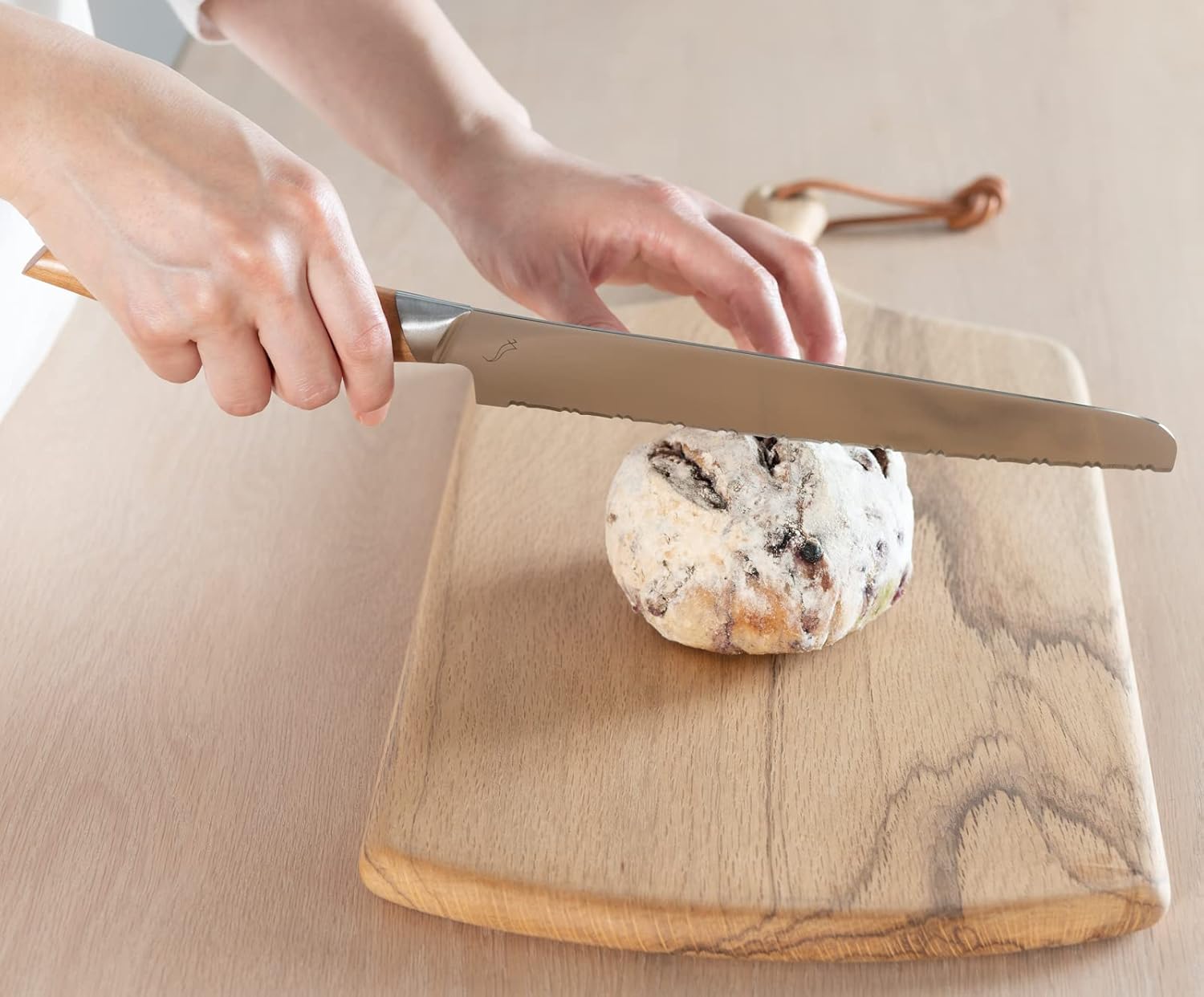 独自の大小のギザ刃を組合せることで、硬いパンから柔らかいパン、サンドウィッチまで、切る位置を気にすることなく刃元から先端まで切り易いところで美しく切ることができます。