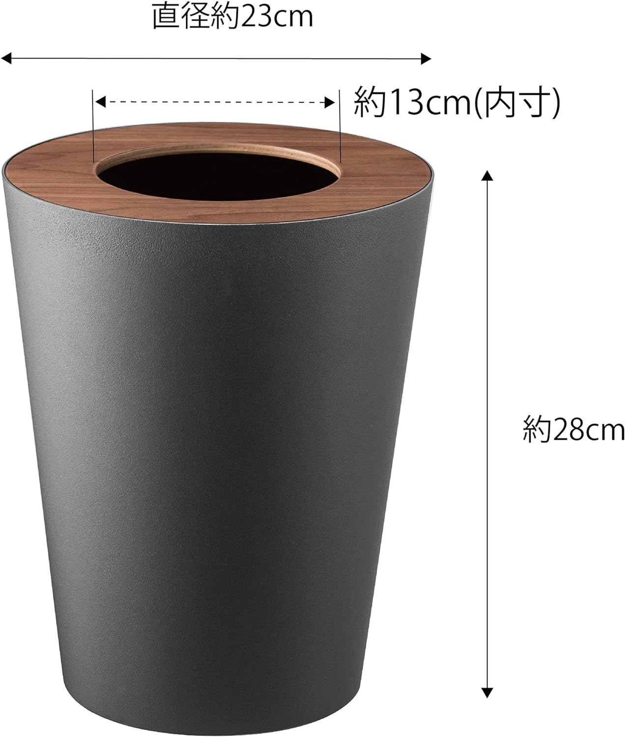 品質表示:本体・ストッパーリング スチール(粉体塗装) / 蓋 天然木積層合板(ラッカー塗装)
